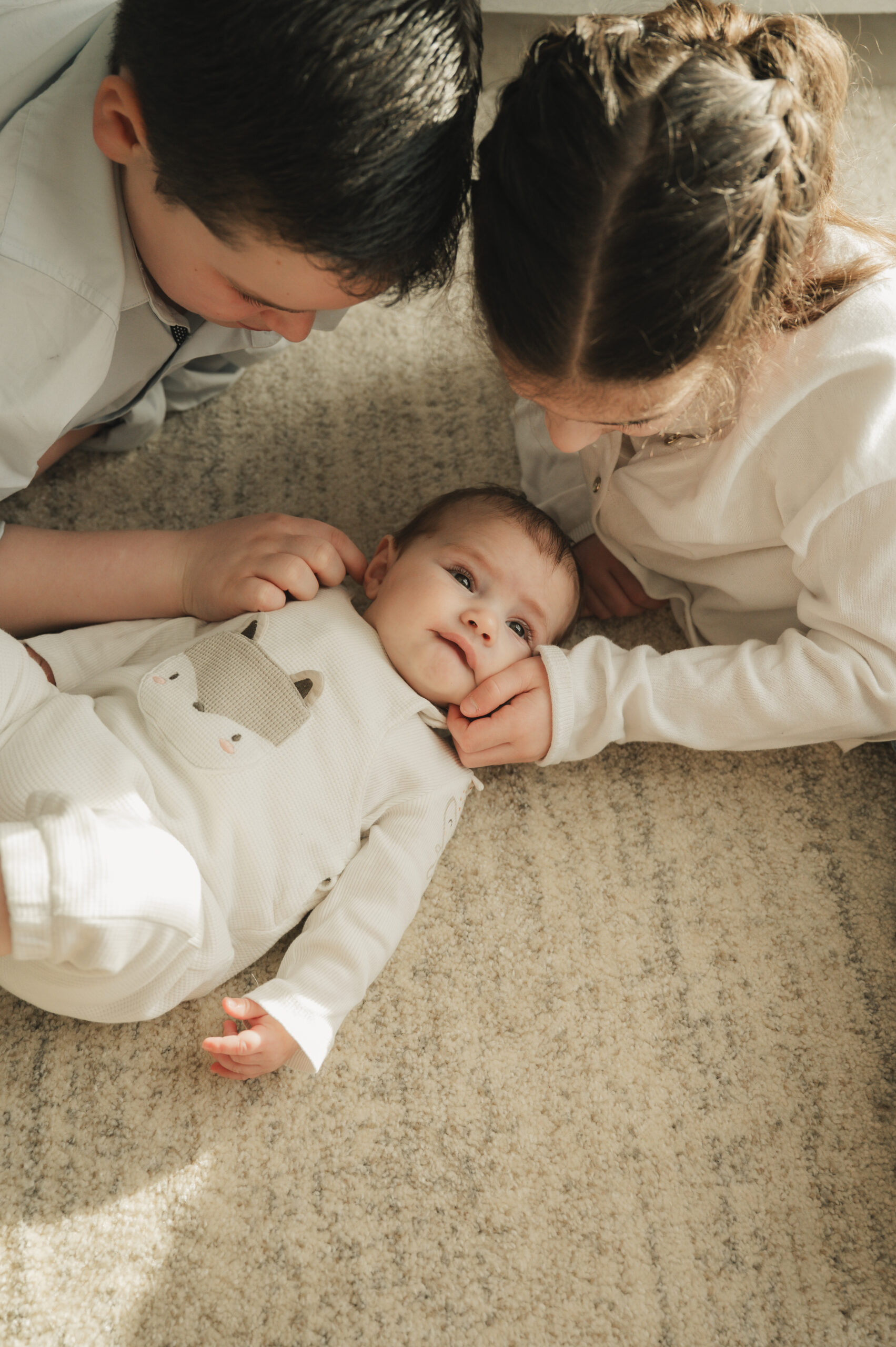 Pas d’inquiétude si vous pensez que votre maison est sombre ou mal rangée. C’est mon travail de photographe de faire en sorte de me concentrer sur vous et votre bébé. Pour la lumière, si besoin, j’ai du matériel !